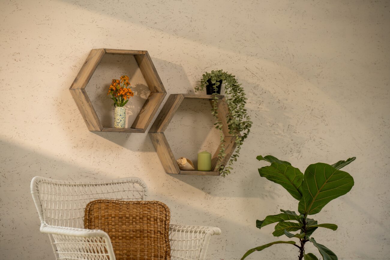 Police ve tvaru šestihranu oživí stěnu a sama o sobě se stane ozdobou. Zároveň je i praktická, neboť dovnitř i navrch můžete vystavit knihy, fotografie, svíčky nebo suvenýry z dovolené. V koupelně nebo ložnici zase poslouží k odkládání kosmetiky. Její výroba je překvapivě snadná.